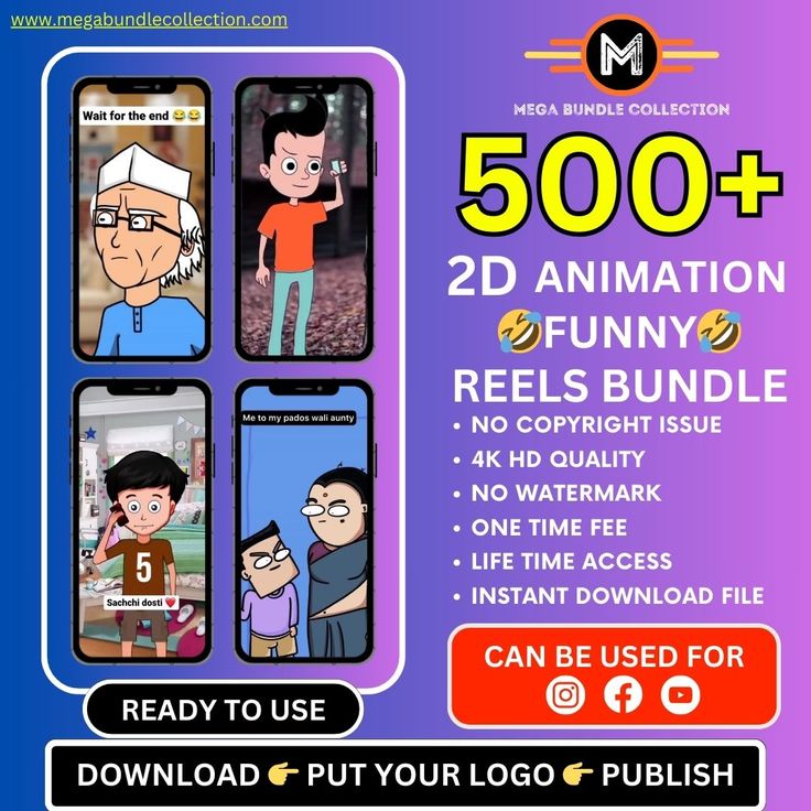 Supercharge your content creation with this all-in-one bundle of 2,000+ professionally designed 2D animated funny reels — crafted to go viral on Instagram, YouTube Shorts, TikTok, Facebook, and more!